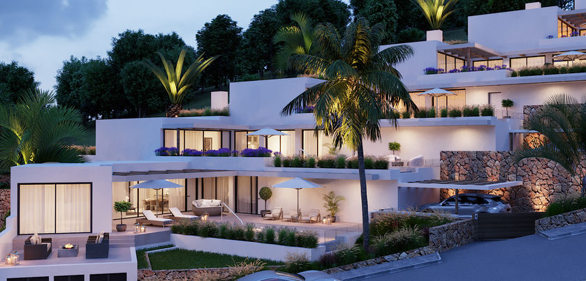 La disposición y distribución de las villas maximiza la luz natural a través de paredes de vidrio de piso a techo que se abren a elegantes terrazas privadas. Esto proporciona a los nuevos residentes áreas de estar al aire libre para disfrutar del clima perfecto de Ibiza durante los largos veranos y los suaves inviernos.